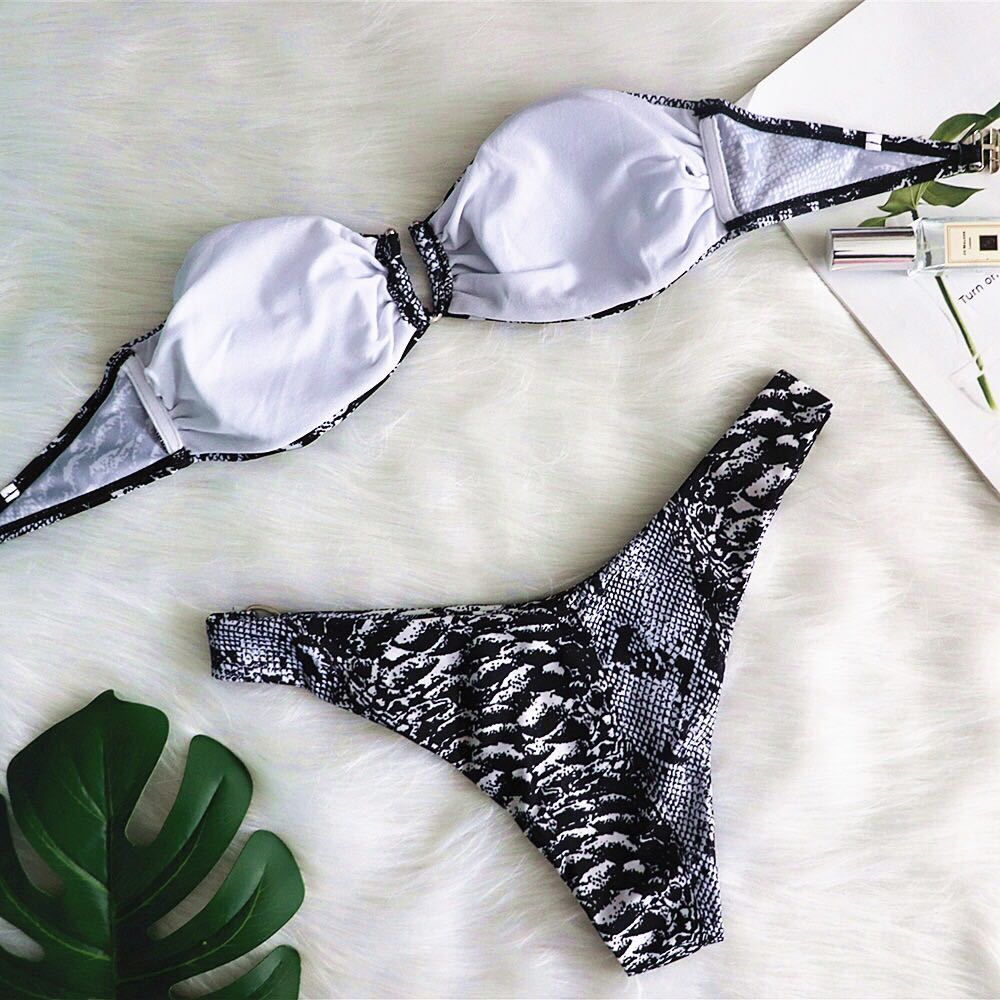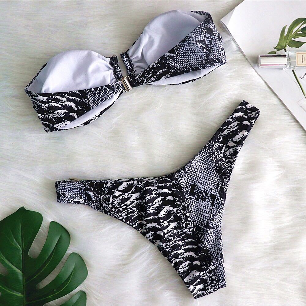 Material: Nylon Size: S M L Color classification: snake pattern Style: Triangle Bikini Whether there is strip steel support with breast pad: without breast pad